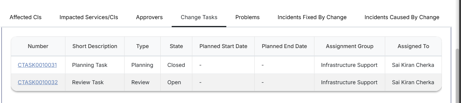 - Ensure the Change record is assigned to the right person/team for planning.