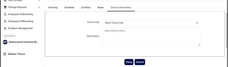 - Ensure that all mandatory tasks are completed and closed before change closure.